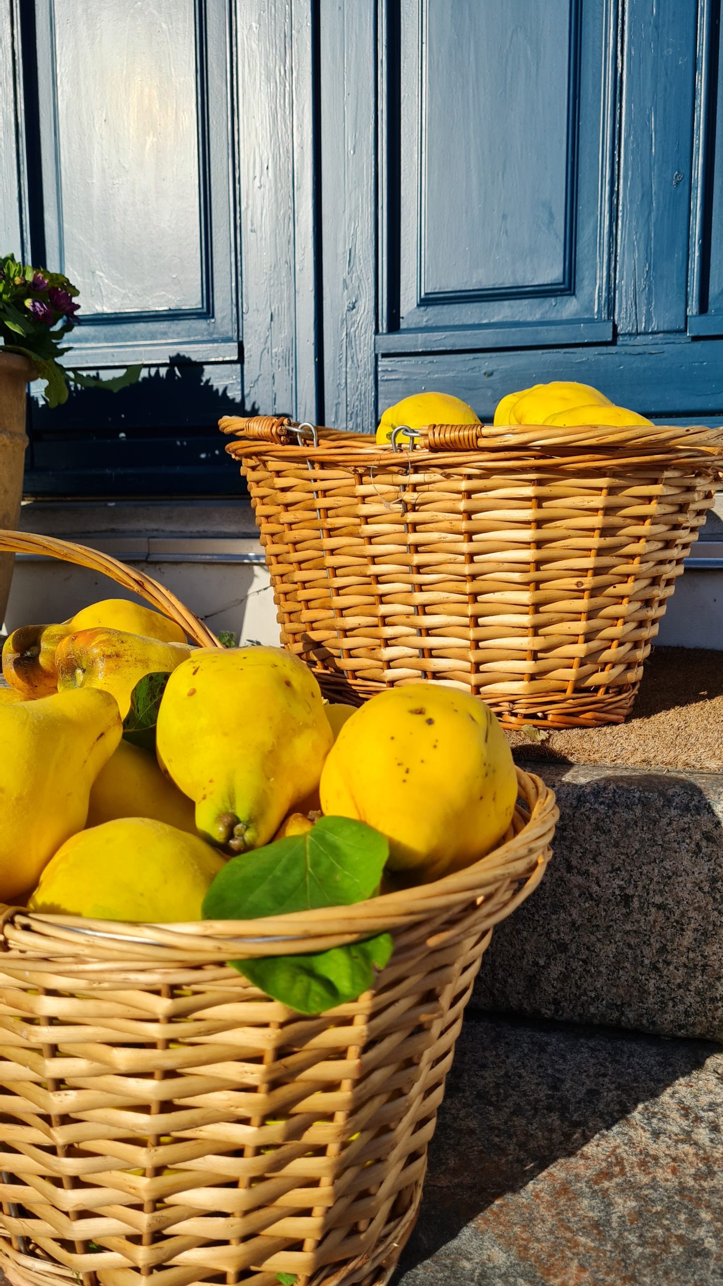 Vi har mere end 30 frugttræer, nye som gamle, herunder både figner, fersken, æbler, pærer, kvæder, blommer og kirsebær.