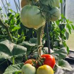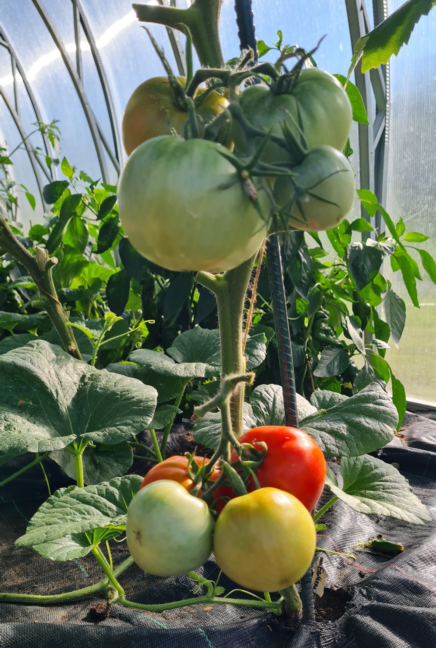 Hele produktionen er i mindre målestok, og vi dyrker med rive og spade, ikke med store maskiner. På nuværende tidspunkt har vi en køkkenhave og frugthave på ca. 2000 kvm inkl. drivhuse, og den dyrkes med henblik på både egen selvforsyning og salg af overskudsproduktionen. Alle opgaverne varetages af os selv og vi har ikke ansatte – og skal heller ikke have det. 🙂