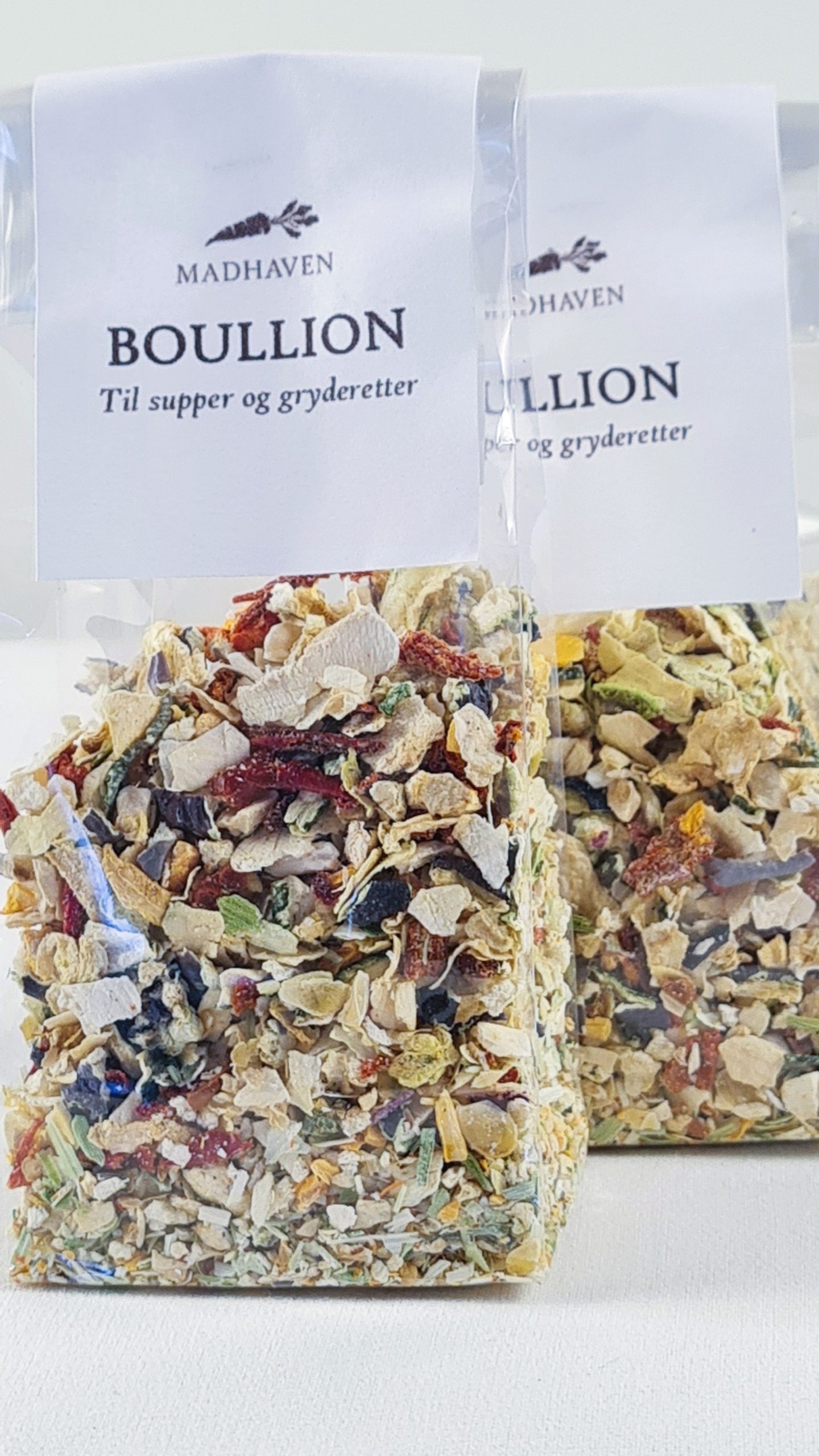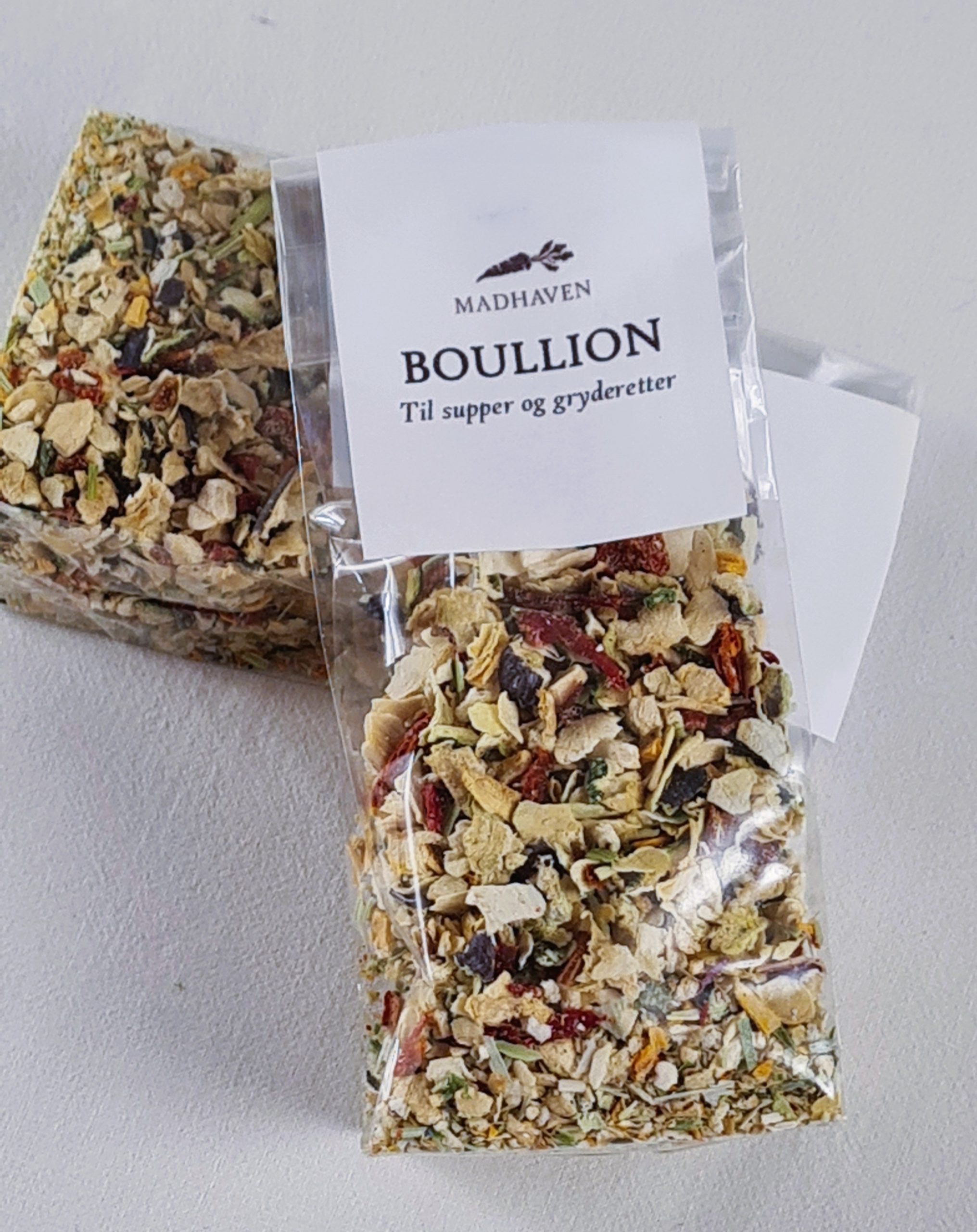 Vores bouillon er fremstillet med omhu og kærlighed på vores gård på Fyn, hvor vi dyrker alle grøntsager sprøjtefrit under åben himmel. Den indeholder skønne efterårs afgrøder som gulerødder, peberfrugter, pastinakker, squash, auberginer, løg og porre – alt sammen høstet direkte fra vores køkkenhave.