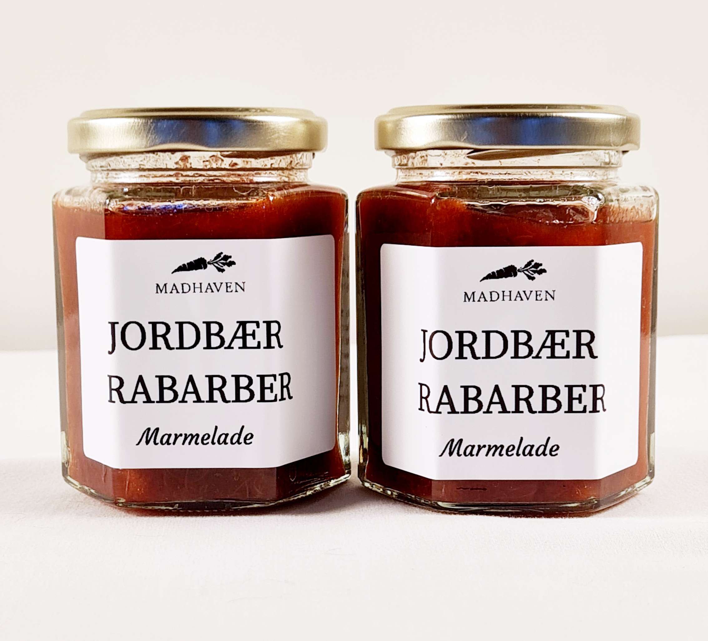 Vores jordbær-rabarbermarmelade er en af vores absolutte favoritter. Den er lavet på vores egne, håndplukkede jordbær og rabarber fra vores sprøjtefri køkkenhave. Marmeladen kombinerer de søde, smagfulde jordbær med de friske, sprøde rabarber og skaber en perfekt balance mellem sødme og syrlighed.
